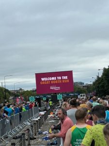 When my bib number arrived I was down as wave 3 in Orange so I was more than happy with that considering it was actually an earlier start time than I usually get, so far so good in terms of the different wave and number start times. The set up on the Toon Moor was brilliant for the start area, I have always hated that battle up and down the central motorway trying to get in the pens and never really been able to use a toilet. This was utterly brilliant and I travelled with Simon and we started the race together as well!