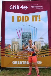 Probably started a little bit too quickly but couldn’t help it, hearing local hero puts such a string in my step. My target time was 1:45 and thanks to some advice from Carl at the Pasta Party at the Lakeside on the Saturday night he told me not to count miles and aim for 25 minute 5ks across the whole race. That’s what I went for and was spot on 5k, 10k and 15k even up to 10 miles. Then the wheels absolutely fell off after going up that massive hill back from Gateshead and it just killed my legs! I actually nearly cried as though I was going to have to stop. I kept pushing though and in all honesty I don’t remember much about the last three miles, especially the last two. I must have been looking at the ground as don’t remember running towards the monument. Over the years I have become a strong finisher and really pushing for the final mile. I didn’t have that in me and even when I hit 800m on the finish stretch I had nothing to push with.